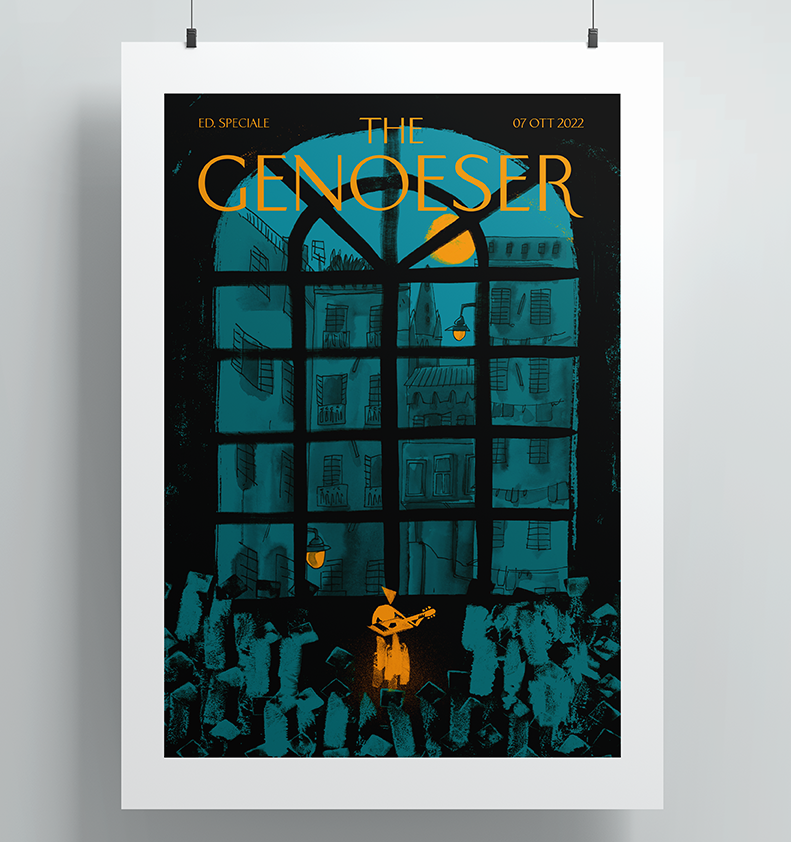 Creazione di una copertina della serata per il Genoeser – progetto artistico collettivo che vuole raccontare Genova attraverso le copertine di una rivista immaginaria